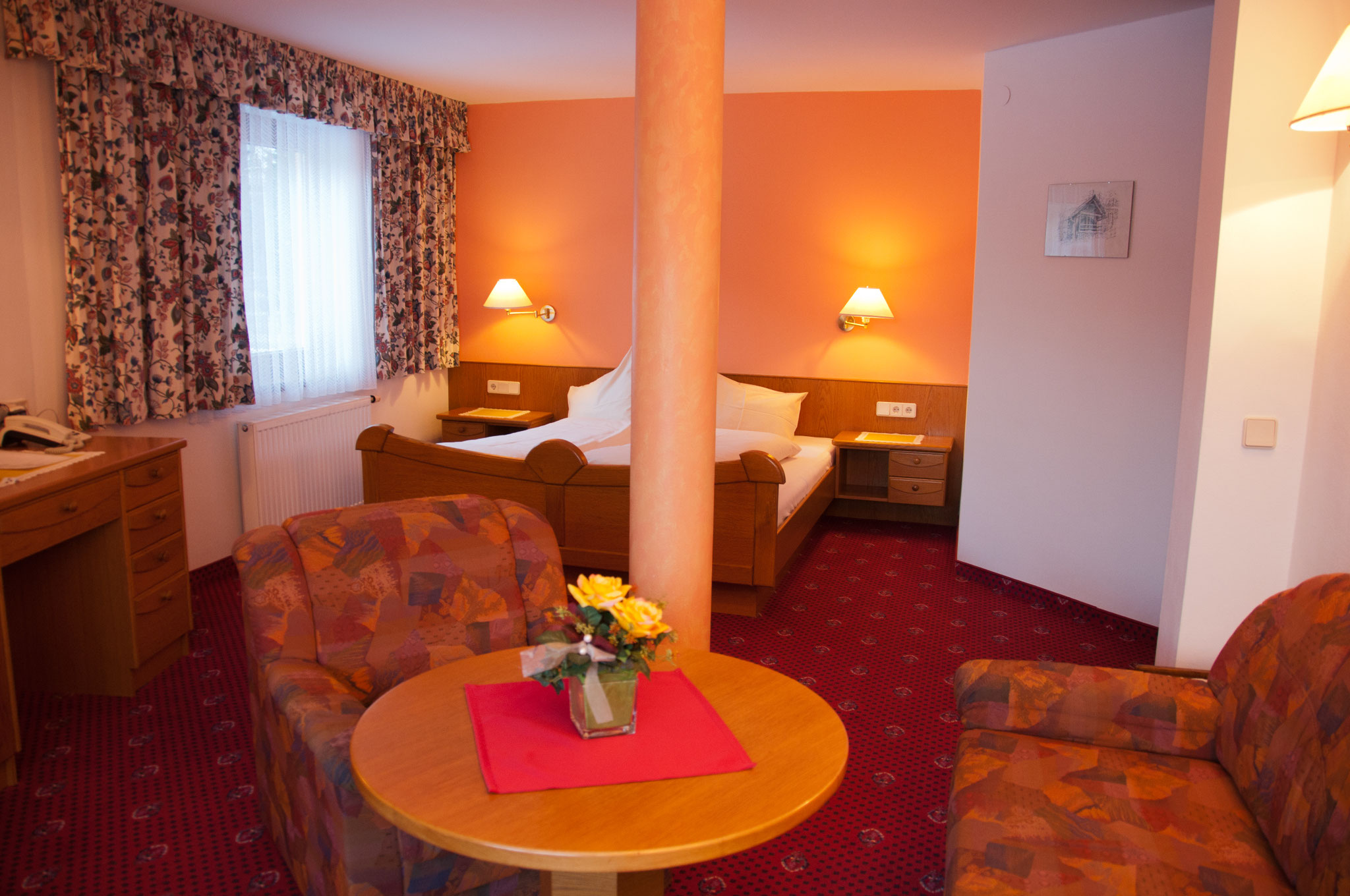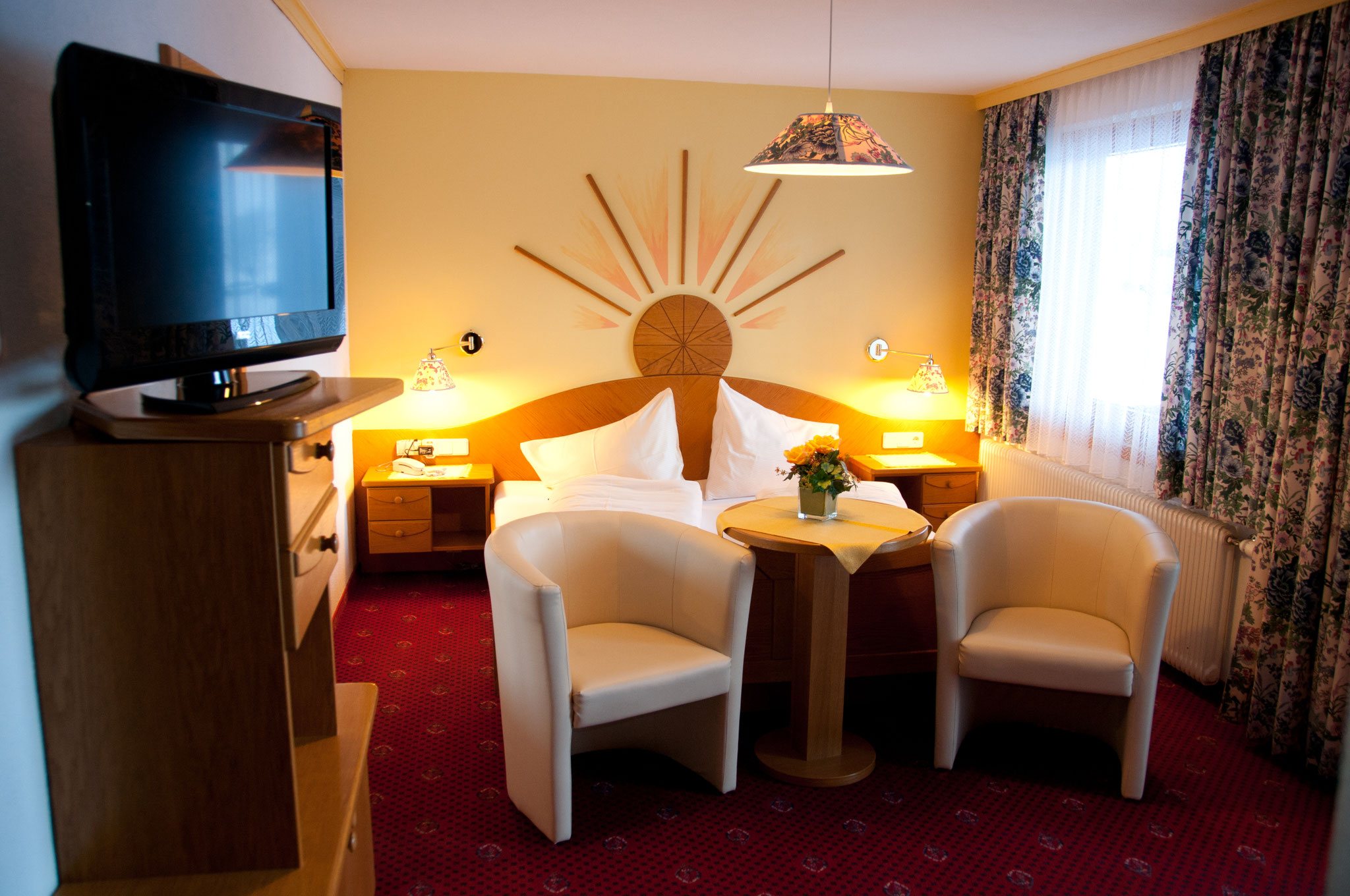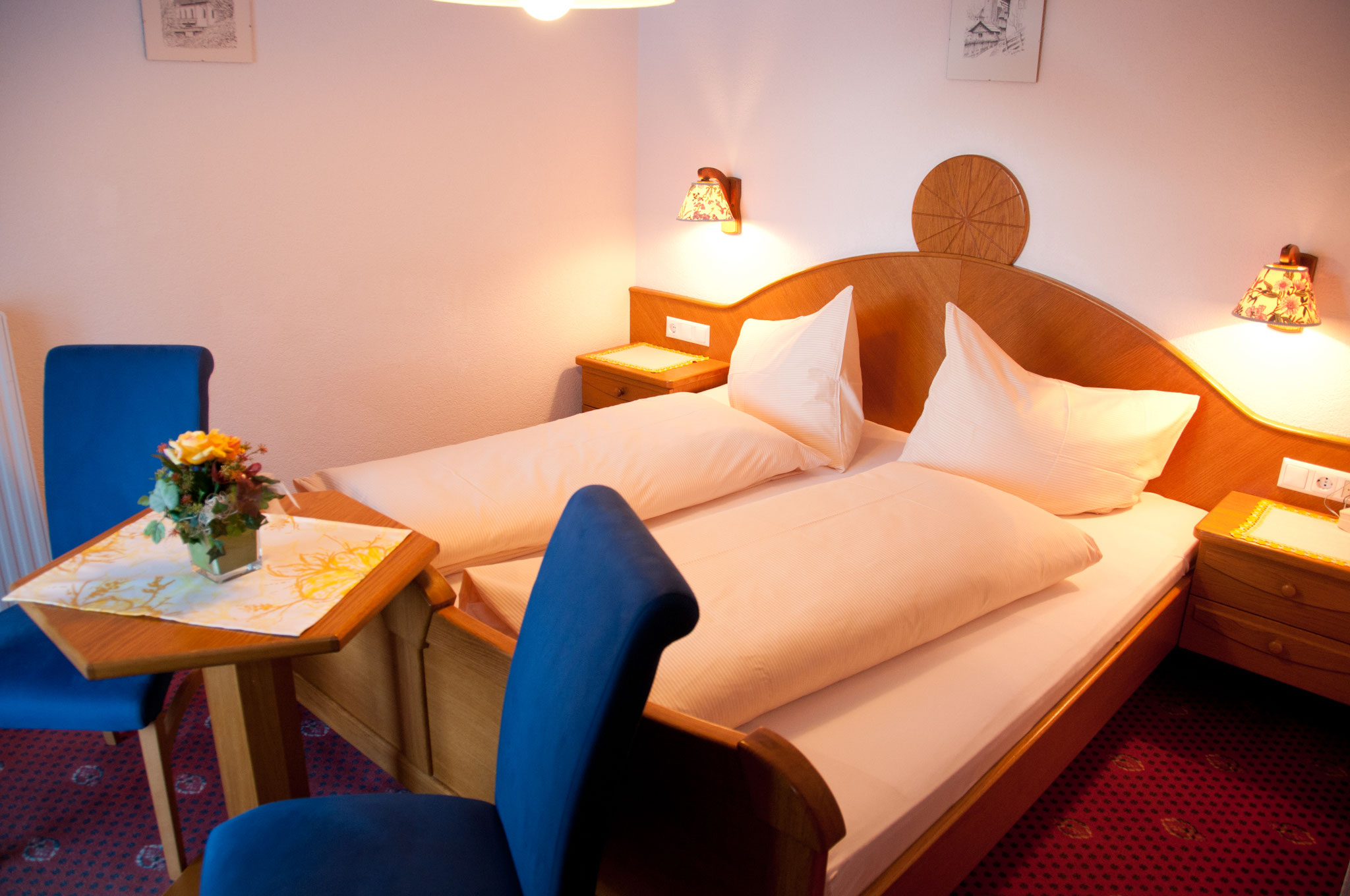 Wir bieten unseren Gästen gemütlich eingerichtete Zimmer mit Balkon, die alle mit Dusche,